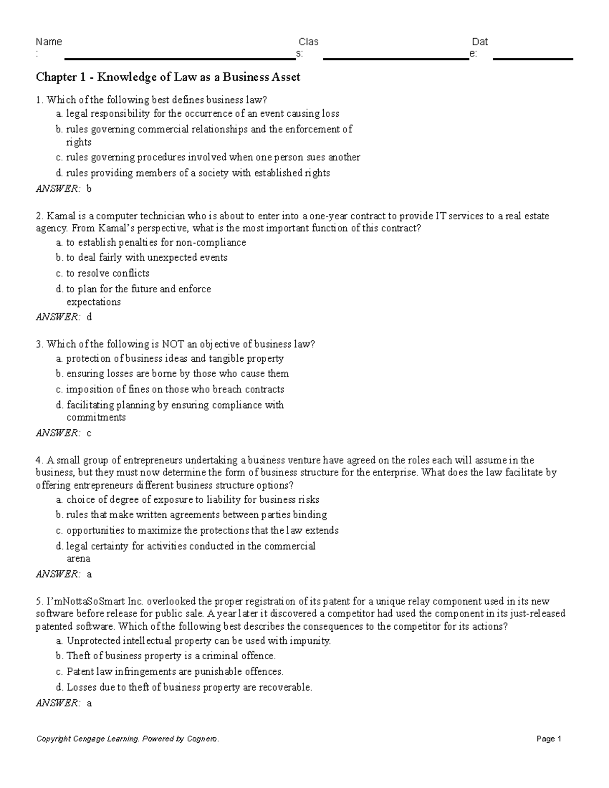 1 13 June 2018 Questions And Answers Name Clas S Dat E Chapter 1 Knowledge Of Law As A Studocu